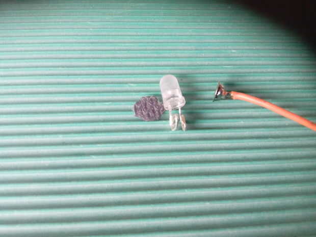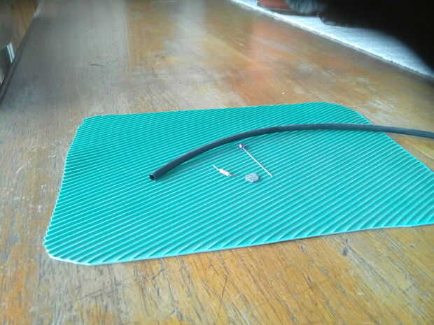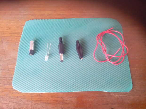 1 utiliza batería A-27 1 dos patas bicolores led 1 conector de CA pinza 1 cocodrilo cerca de 60 cms o más de alambre 1 aguja de coser rotos 1 pin tubo termocontraíble 1 resistencia de 300 ohmios