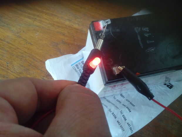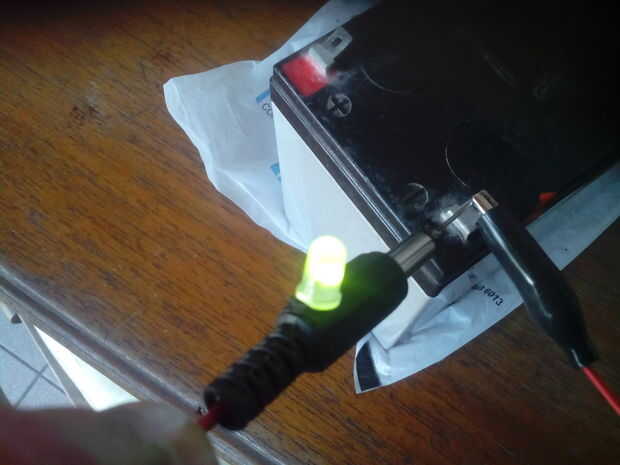 trabajo bueno, cuando lo toca la negativa del poste de las luces led verdes, cuando toca el el polo positivo luego luces verde