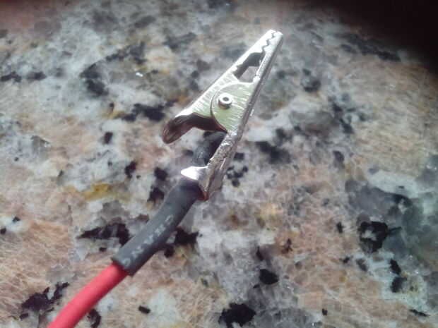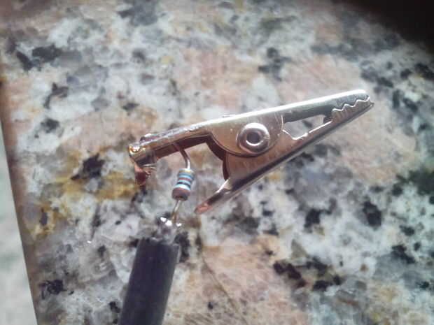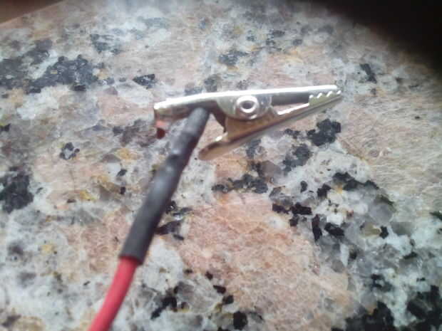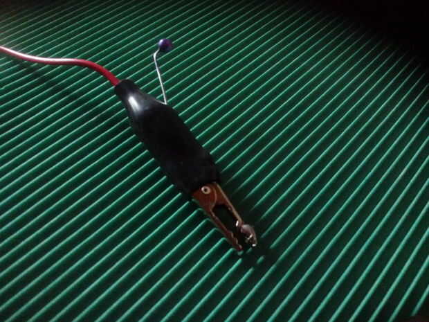 Tomar un alambre suave un anillo alrededor del final del cocodrilo y de la soldadura, de manera que deje que se deslice entre el pin