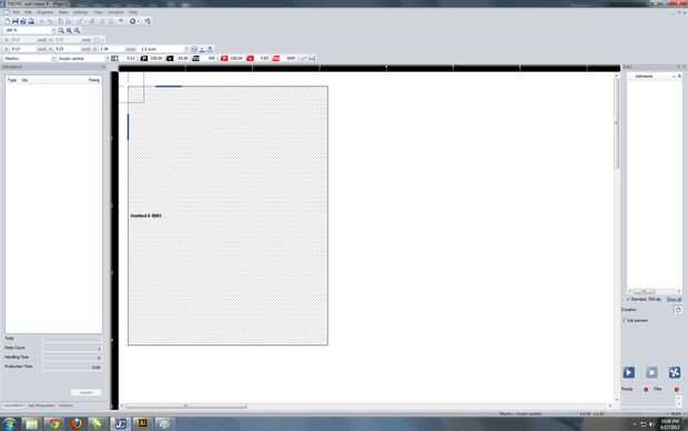 Los gobernantes en esta ventana corresponden con las reglas en los bordes de la cama del corte láser. Para ahorrar espacio y para no desperdiciar material, use estas reglas como guías para obtener su material y archivo alineados. Mi material es de forma irregular; Por lo tanto, posicioné mi archivo para que no ejecute el borde del material.