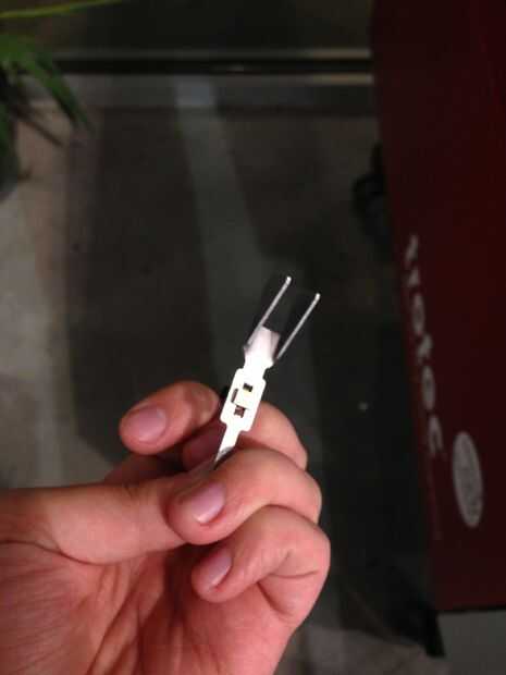 El cortador del laser debe venir con una pequeña herramienta de metal (fotografiada abajo). Lo dos pies en la parte inferior y una pequeña plaza en la parte posterior. Identificar esta pieza o pedir el equivalente para el cortador del laser que se utiliza.