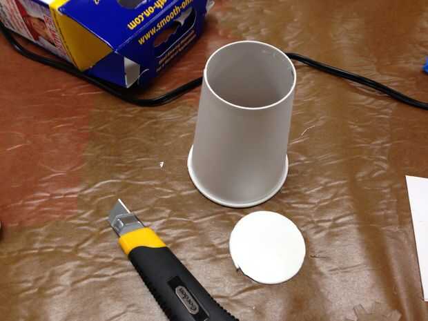 Con un cuchillo o herramienta similar, corte el fondo de una taza de papel.