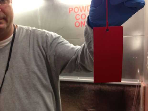 Recoger la pieza por el cable que cuelga en, teniendo cuidado de no tocar el polvo. Debe tener una capa agradable, uniforme y mate.