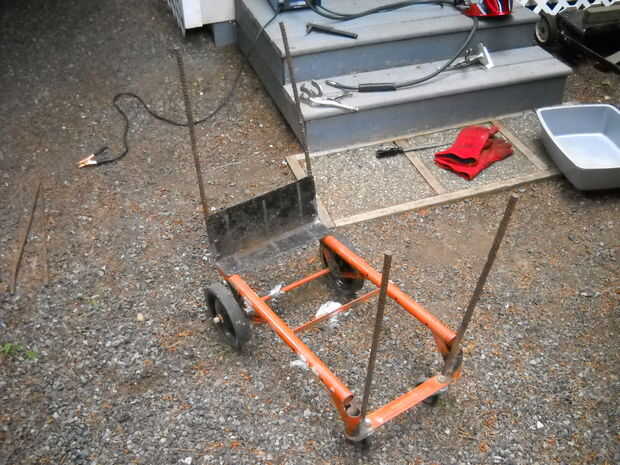 Coloque las piezas de madera contrachapada sobre las barras de acero horizontales. Éstos apoyan las cajas de desechos de gato.