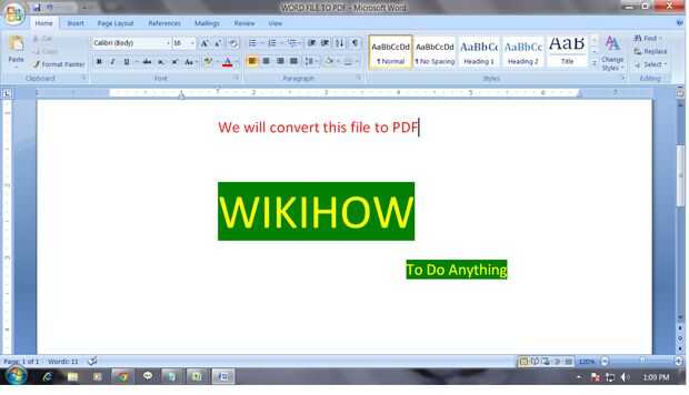 Abra un documento de Word que desea convertir en PDF. Ver la imagen abajo