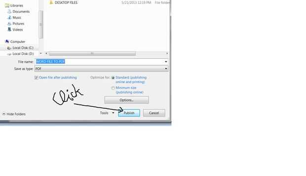 Paso 4: Guardar el archivo, el archivo se convertirá a PDF, si no encuentra "pdf o xps" en guardar como proceder menú del paso 5