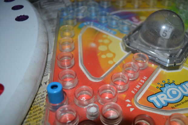 El juego real de problemas, se presenta para cuatro jugadores, con los famosos Pop-O-Matic en el centro, con las piezas del juego recorriendo el tablero cuadrado.