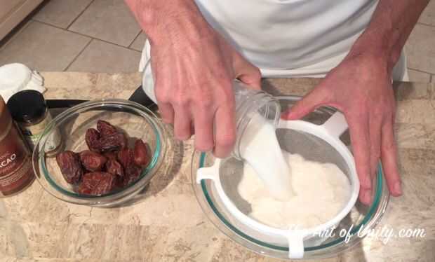 1. colar el kéfir de la leche y colocarlos en leche de Coco solo.