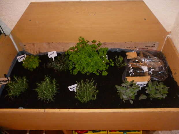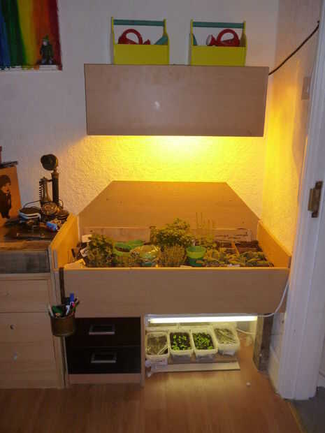 Alrededor de una semana después de que postee esto decidí construir un jardín de hierbas en el extremo de la mesa para mis hijos ya que carecen de un verdadero jardín en el pub usé el escritorio antiguo para construir una caja, hecha agua firmemente con sellador, forrado con sacos de polietileno/escombros puso una capa de piedras, luego rellenado compost y cayó algunas hierbas en maceta y plantó algunas semillas la base está ligeramente adelante a una esquina donde hay un agujero de drenaje y un rebosadero para escurr agua ive también tiene una luz del sodio de alta presión de 150w de otro proyecto que va a fijar sobre ella para completar el mal tiempo en Reino Unido pero deben crecer de todas formas sólo desde la luz de la habitación.