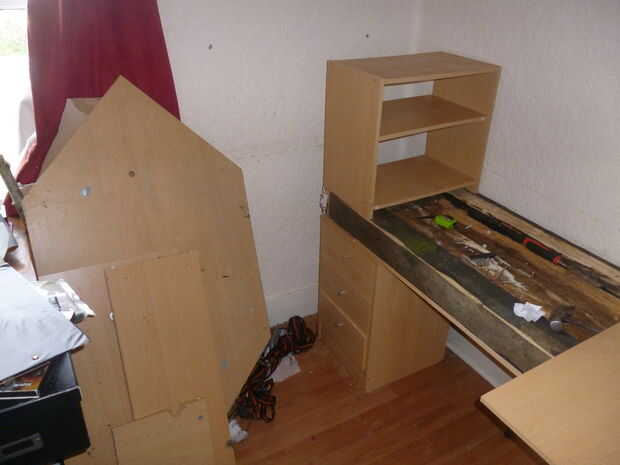 construir una pequeña estantería de pedacitos del viejo escritorio pero confundieron por mi taburete y se sentó en él tan en su lugar fui por un solo estante más robusto dejando la bombilla con una tapa de madera contrachapada para cambiar, es nessacery para cubrir este extremo con el fin de enfocar la luz pero he dejado algunos ventilación debajo para dejar fluir aire a través de.