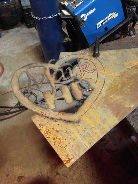 Una vez que estaba todo cortar, me encontré un cepillo de acero sobre los bordes para desprender la escoria. Había uno o dos nítidas manchas y utilizado un archivo para los liso hacia abajo, pero esta limitado en todo lo posible para retener la mirada nerviosa. Por supuesto, muchos otros acabados se obtendría, por chorro de arena o pátinas o capa del polvo, etc.. Sentí que el metal crudo conservaría su belleza a través de todos los cambios durante su vida útil, al igual que el matrimonio de mis amigos!
