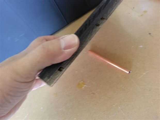 Incluso tomando tu tiempo desenrollado cobre todavía tiene una ligera curva a él. Uso una tabla, para aplicar presión en el tubo y rodar hacia adelante y hacia atrás sobre una superficie plana. Esto endereza el tubo del objetivo más práctico.