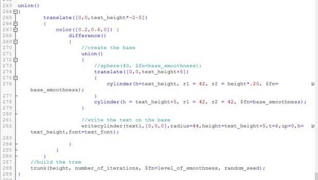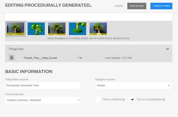 Desea publicar su árbol en Thingiverse como un Personalizador, para que todos puedan hacer su propio árbol usando el Customizer de la aplicación. Para ello, necesitamos añadir un par de comentarios que diga la aplicación Personalizador que variables son personalizables y cómo.