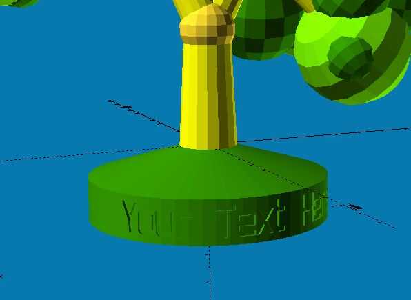 A continuación, vas a agregar una base e incluye una biblioteca de texto que te permitirá añadir un texto a él. La base está hecha de un cilindro en la parte superior otro cilindro. El cilindro superior se afina hacia abajo para que coincida con el radio de la parte inferior del tronco.
