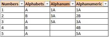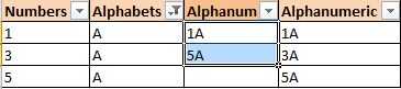 3. Seleccione las celdas que desea agregar en la columna recién agregada. Le copia los valores visibles en la columna 'Alfanumérico'.