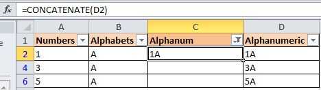 5. ahora, vamos a probar una nueva técnica. Utiliza la función 'Concatenar'. sí, sé que se pretende concatenar dos celdas pero aquí, vamos a utilizar para una sola celda sólo.