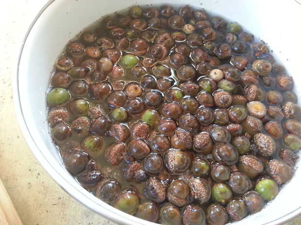 Tener ordenados los flotadores y plomos, dejarlos secar y será más fáciles al casco. Montón de todos sus nutmeats bellota en un recipiente para preparar para la lixiviación.