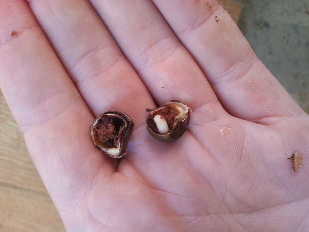 Pongan todas sus bellotas en un recipiente y llenarlo con agua. Algunos van a flotar. Más flotadores tendrán un pequeño grub dentro de ellos. Puede descartar, o comer la comida cruda o frita o utilizar cebo de pescado. Green Deane de comer la maleza dice puede enterrar la bellota y grub en un cubo de arena o aserrín y se hará un capullo en un año, cebo de pescado mejor rendimiento.
