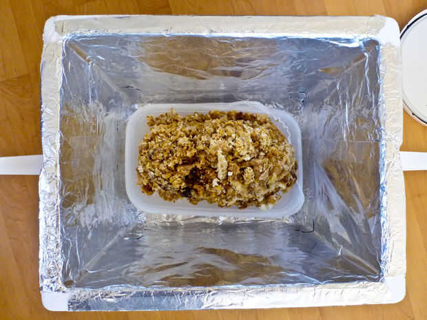 Puse tanta cera como podría ajustar en la parte superior del filtro y en el refrigerador. Luego corté la hoja de acrílico a medida para actuar como la tapa de la nevera, permitiendo que los rayos de sol en.