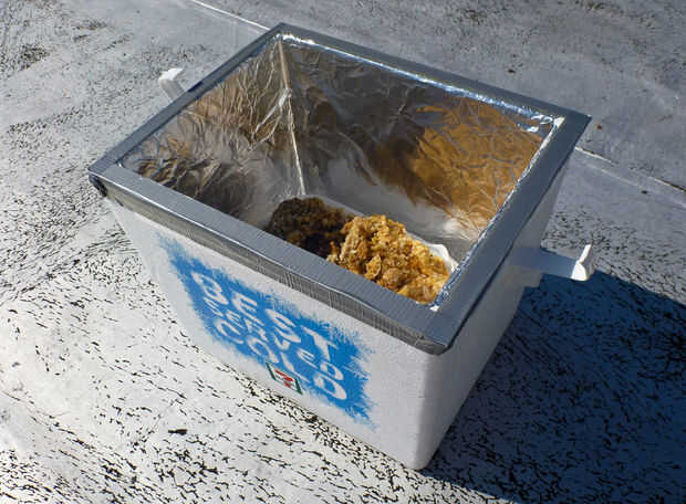 Por conducto de taping el acrílico a la nevera, habrá creado un horno de sol.