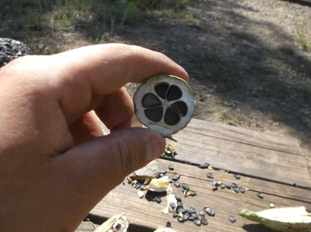 La planta es un árbol de hoja perenne y gustos a través de animales, a juzgar por el aspecto de las semillas. Los frutos y semillas son comestibles, me parece que huelen similares a un calabacín crudo cuando el corte abierto. Puesto que las semillas endurecen cuando la fruta madura, puede ser ventajoso tratar como cucurbitáceas y comer las frutas antes de que estén completamente maduros, cocinarlos primero. Cuando la lluvia viene, excreta las semillas se lavan a menudo descenso--y por lo tanto debe buscar yuca en lugares donde agua fluiría naturalmente en tormentas de lluvia ocasionales--tales como cárcavas. Como extra, también puede utilizar las frutas para cebo trampas podría hacer de cordaje de yuca!