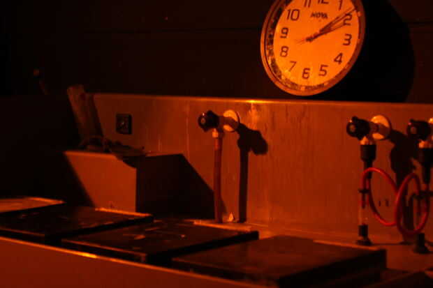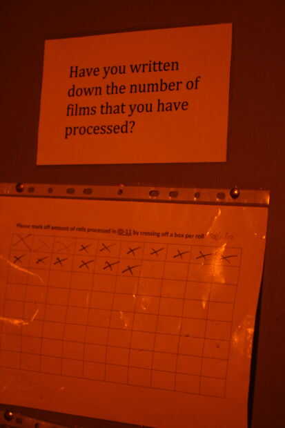 El tiempo que tiene la película en el dev para varía de película a película. Yo personalmente uso 400TriX la mayoría del tiempo, que es una película en blanco y negro, y el desarrollador ID11, su toma 5 minutos. Durante el primer minuto, agitar la jaula, significa que lo lentamente levanta arriba y abajo, nada a vigorosa ni loco. Entonces, cada minuto después de eso, agita durante 10 segundos.
