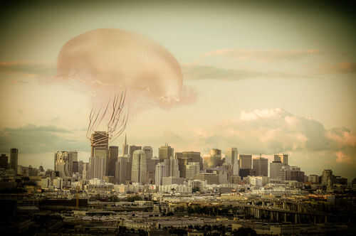 A continuación, he probado un tratamiento de calentamiento que era una mejor dirección en cuanto a suavizar la sensación de la imagen y unir los dos conceptos, pero faltaba todavía la sensación coherente y poderosa para que iba. Ahora la ciudad fue perderse, incluso mientras que las medusas se veía fabulosa.