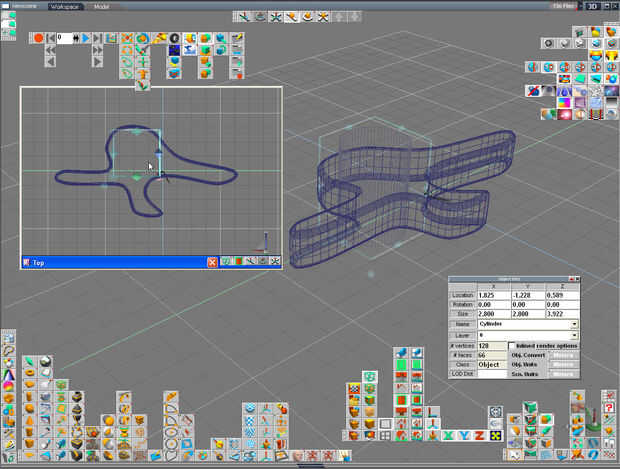 Creé un nuevo objeto cilindro y coloca sobre el mango. Miré el espacio desde el lado para asegurarse de que el cilindro se coloca en todo el contorno de la manija. Entonces selecciona el mango como el objeto activo haciendo clic en él y pulsa el botón de "Restar volumen" luego había seleccionado el cilindro. El cilindro entonces se restó de la manija, dejando un agujero.
