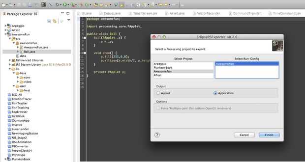 Prensa de acabadoy los ejecutables para las tres plataformas aparecerá en el directorio de trabajo (por ejemplo en directorios llamados application.macosx, application.linux, application.windows).