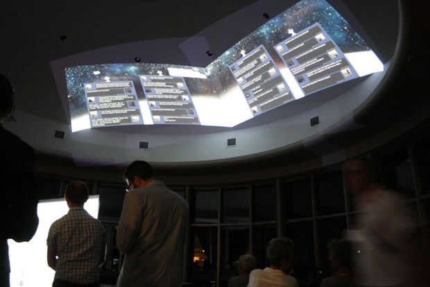 Aquí es un ejemplo de cómo Proclipsing puede ser increíblemente útil. En la foto superior es el motor de animación de Tweets en el espacio. Escribí el software en Java, usando Proclipsing para conseguir comenzó. La aplicación es una animación de doble proyección que rosque con macho en una base de datos SQL, que capta todos los tweets con el hashtag #tweetsinspace vivo. El rollo de tweets en el costado del edificio, las luces en el edificio de encender y apagar, satélite platos mover hacia adelante y hacia atrás y los tweets a naves espaciales que llevará al espacio profundo de la "viga". Esto es exactamente el tipo de proyecto que se llenaría con frustración en el proceso de IDE.