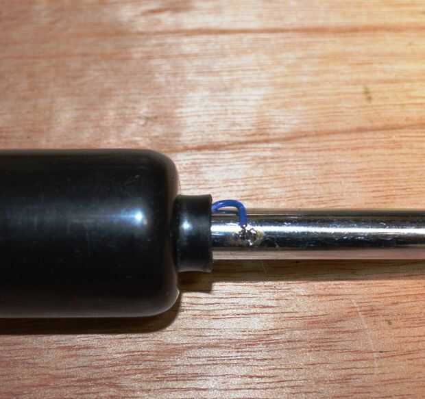 6. la soldadura en el cable azul (uno pegado al lado en la parte inferior de la antena)
