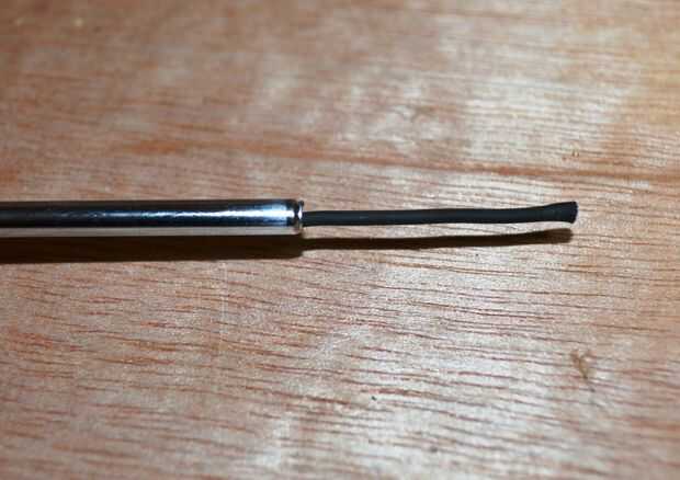1. la soldadura en una pieza de alambre fuerte que sale de la parte superior de la antena.