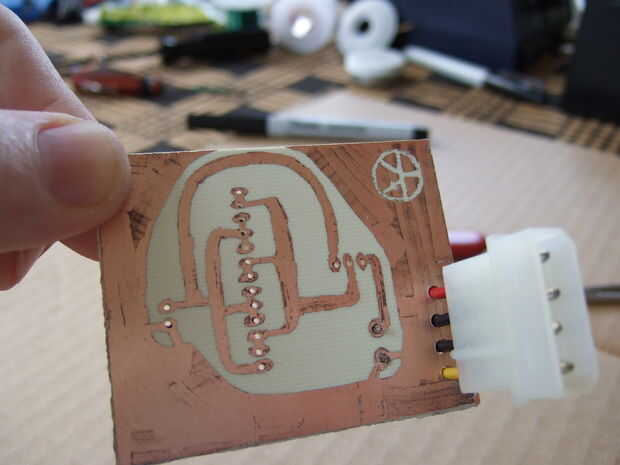 El sharpie punta ultra fina va directamente a través de orificios perfboard.