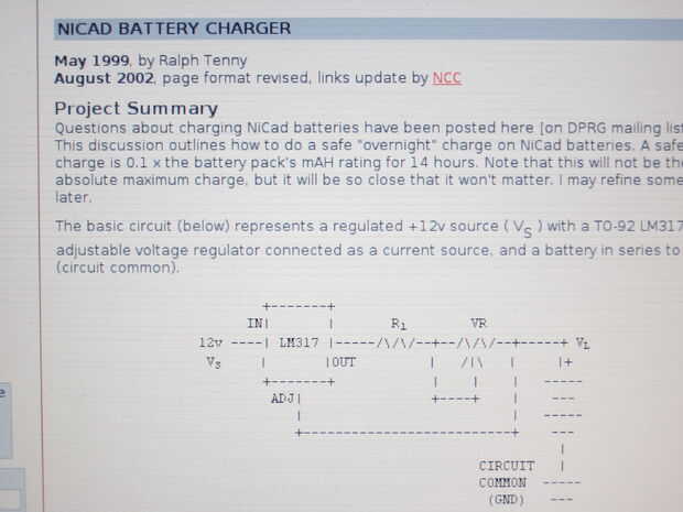 El circuito de 's bastante claro. Poner una resistencia (o un grupo de resistencias en paralelo) entre los dos polos de un regulador de voltaje LM317T y escupe hacia fuera corriente igual a 1.25 V / ohms R.
