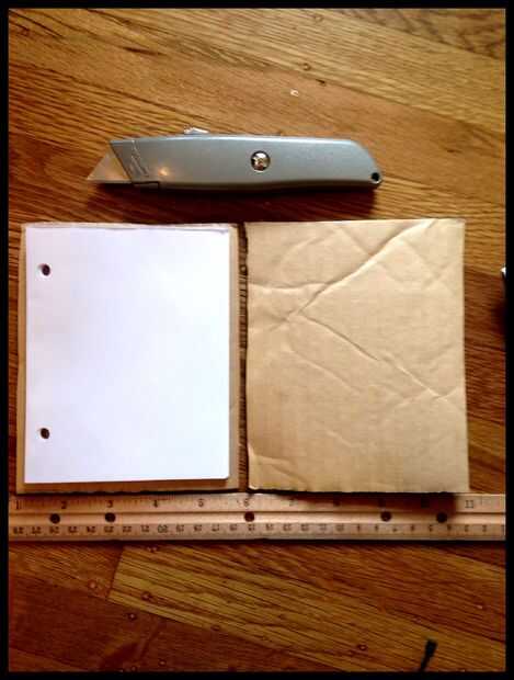 Ajustar su perforadora para hacer agujeros uniformemente espaciados en sus paquetes de papel. Sacador de paquetes. Cortar dos piezas de tapa de diseño y piezas de la caja de un tamaño ligeramente más grande que el papel. Perfore orificios en cubiertas para agujeros en paquetes de papel.