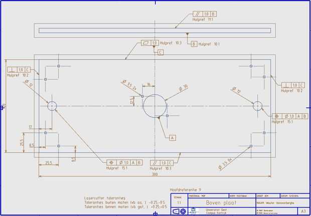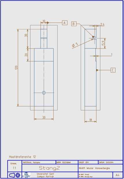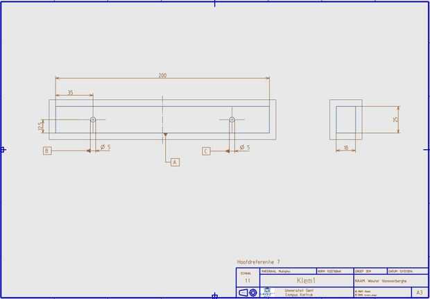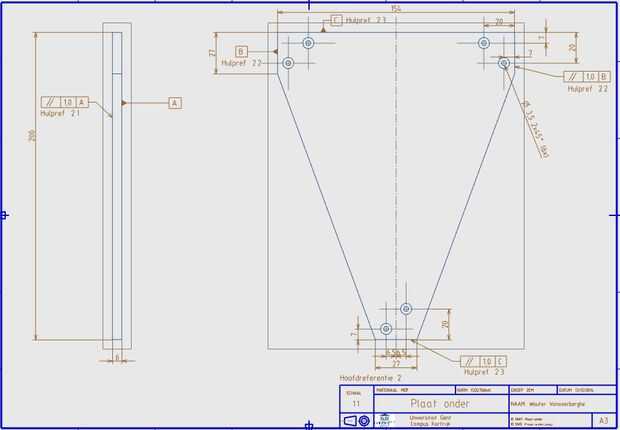 Aan de mano van tekeningen 2D uit het programma Siemens NX 9.0 kan je de piezas maken. Hieronder staan welke máquinas gebruikt worden om welk y te bewerken.