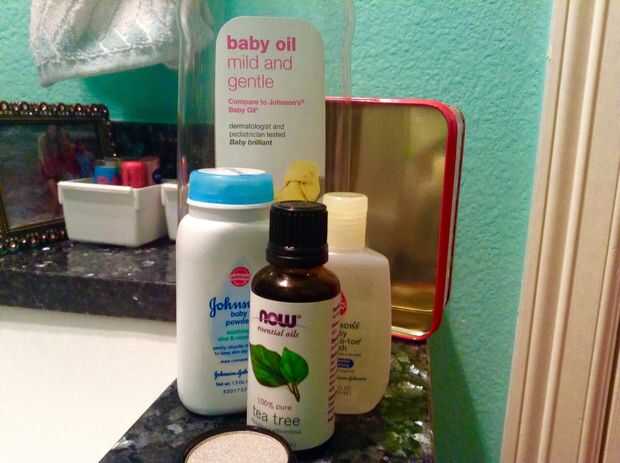 Aceite de bebé-no tienes que usar, pero hace que la piel muy suave. (1,00 $ era el precio de la mina)