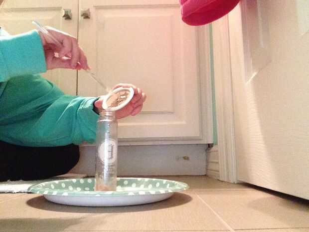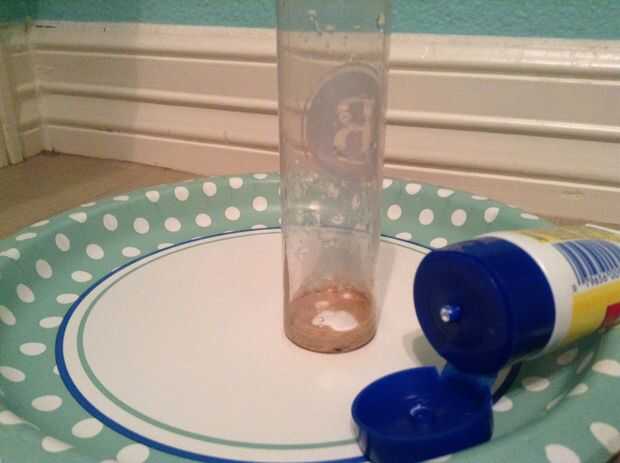 Empezar por chorros de cuatro gotas de corrector en el envase. A continuación, agregue un chorro de crema y un poco del crema solar. Después de eso, utilice su cuchillo de plástico para empujar casi todo el toner en el envase. Por último agite hasta y aplicar!