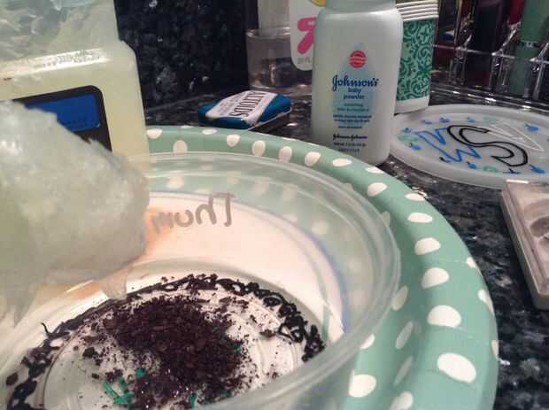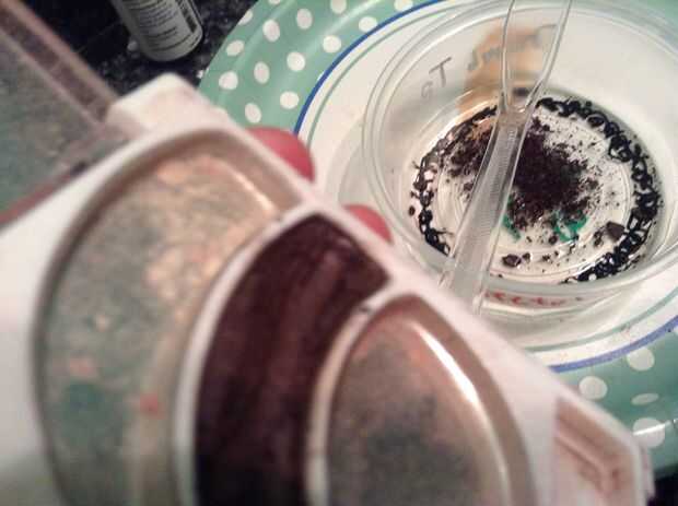 Empezar preparando el contenedor enjuagando con agua. Luego sacar algunos vaselina/vaselina en él. A continuación, vierta los aceites esenciales y quitar la sombra de ojos oscura en la mezcla. Por último agregue la jalea de vaselina/petróleo y suavizar. Aplicar y disfrutar!