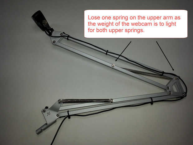 Porque el brazo de micrófono está diseñado para un peso más pesado que esta webcam sin el peso de la base de montaje que se dejó fuera, uno de los resortes de la parte superior del brazo fue quitado y parece ofrecer movimiento fácil.