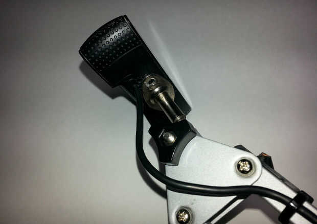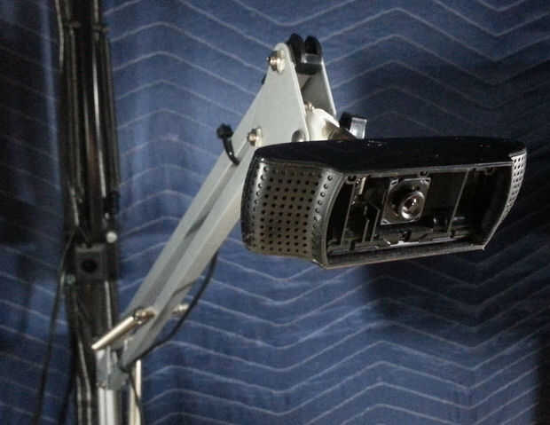 Mi webcam se ajustaron al boom con la brida que sujeta la lámpara interruptor vivienda. Puede que necesite un cable de extensión USB dependiendo cuán lejos de su computadora.