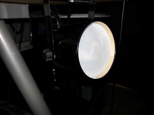 Luces de retroceso están en el suelo o en mi caso atornillado en la parte inferior de la mesa para mantener el suelo. Son más pequeños y usados para suavizar las sombras detrás del sujeto. Debe ser a nivel de la cintura o por debajo y para en 45 grados al centro detrás del talento.