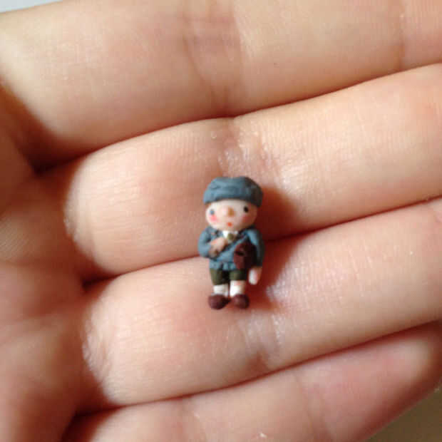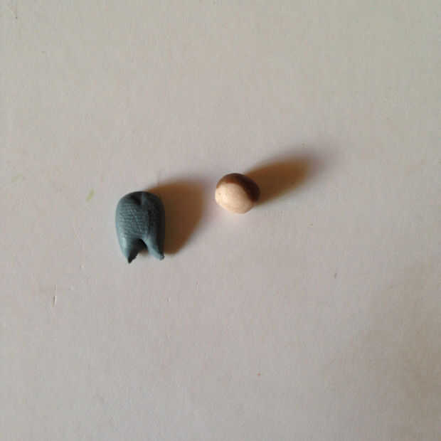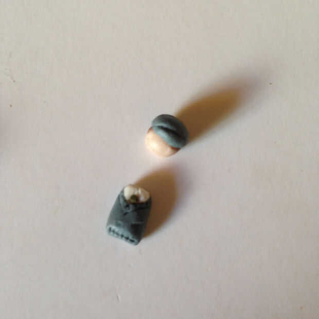 Entonces, metes en el congelador por 15 minutos otra vez. Empezar a montar las piezas juntos y añadir un cuadrado marrón pequeño para su bolsa de mensajero. Por último, añadir un punto minúsculo pequeñito para la nariz.