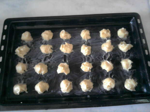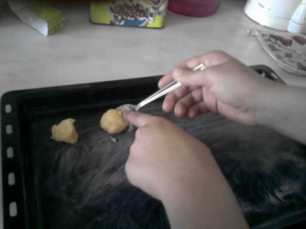 pequeños trozos de masa y coloque la bandeja para hornear... y cocinar... grado 175... 30-40 minutos...