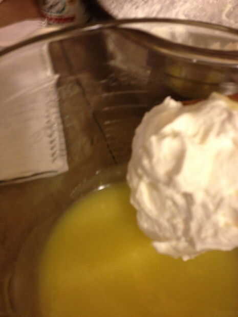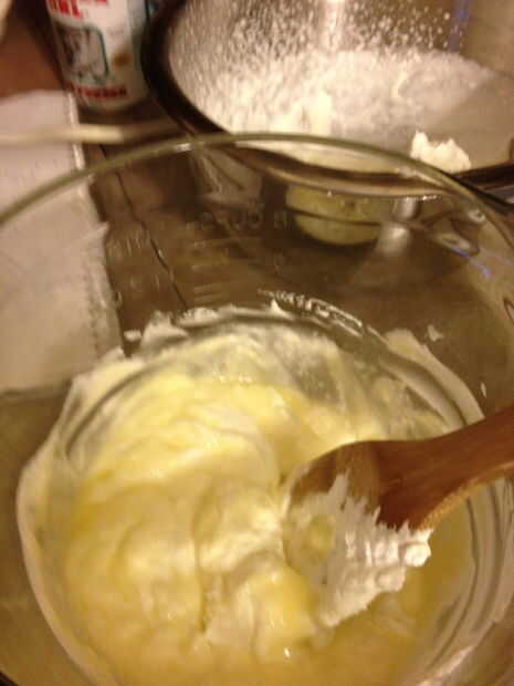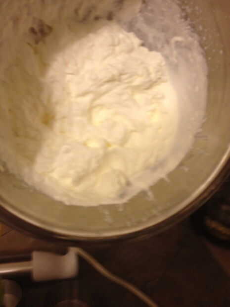 - Tomar 1/3 o que, de la crema de látigo y dóblela e introdúzcala en la cuajada, luego el siguiente 1/3 y terminar con el último de la misma. De esta manera la crema látigo resistirá a la cuajada y terminarás con una cremosa mezcla de luz.