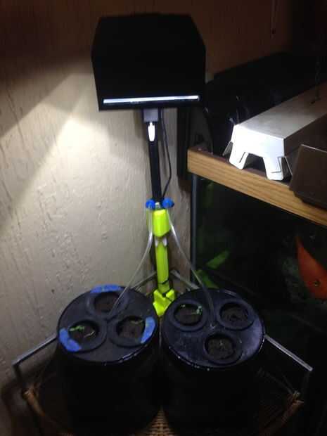 Estoy usando el mío para crecer hierbas pero se puede utilizar para crecer nada de hierbas, lechuga, tomate... si plantas más grandes utilizan el sistema para bajar sus plantas a un comienzo saludable y luego transplantarlas fuera. Opté por usar 2" tazas pero puede usar una taza grande de red en vez de tres pequeños, todo depende de lo que usted prefiere. También estoy usando dos macetas bajo una luz, una vez más esto depende de usted. No tienes que usar café latas cualquiera, bastará con cualquier envase de plástico con tapa.