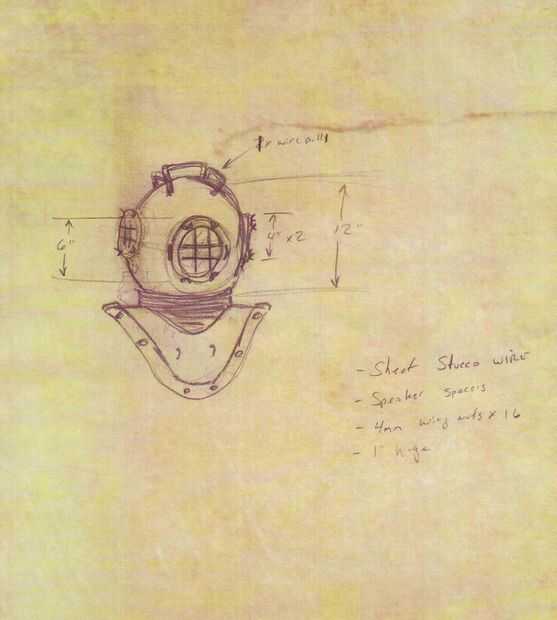 Esta parte probablemente tomó cerca de 60% del tiempo.  Comencé el casco en mediados de septiembre tal vez trabajar en una hora aquí y allá y terminado 19/10/12.  Mucho tiempo pasó navegando por internet para decidir qué estilo casco me va a hacer junto con lo que las piezas son un casco de alta mar y tratando de cazar a los materiales.  Pero yo soy un firme creyente de que está preparado para la tarea va a terminar en un buen resultado.  Después de que decidí elegir un estilo que parecía el casco de buceo Mark V tenía que tomar medidas para calcular ratios necesarios para las piezas. El cambio drástico sólo que hice de mis planes era la altura del cuello.  Comenzó en 3" y terminó en 3/4".  También la anchura del cuello hacia el lado del hombro.  Fue de 6.5" a 2.5" en la parte más angosta.  Decidí usar un globo de luz acrílica de 12" para el timón.  Era el más barato conseguir el tamaño salió perfecto con mis matemáticas.