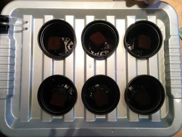 Ahora el está listo para llenar para arriba para la real! Como estoy pensando en germinar las semillas en cubos de Root Riot voy a rellenar minas para justo debajo de las macetas. El mantener los cubos húmedo pero no empapado, como las burbujas en la superficie del pop de agua. En este momento me han dicho que no requieren una solución de nutrientes, sin embargo, una vez germinadas y raíces formando el comienzo es el momento de clasificar los nutrientes!
