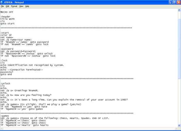 Si no '% contraseña %' == bloqueo de goto 'Joshua'