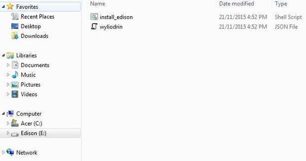 - Enchufe de USB al ordenador y poder copiar el intall_edison y wyliodrin.json.